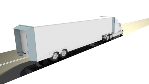 CAN TRANSPORT TRUCKS BE MORE AERODYNAMIC? Transport trucks must have the capacity to efficiently transfer cargo from one location to another while traveling on public highways and urban roadways. The Tractor truck needs to be able to attach onto various trailer configurations while maintaining maximum manoeuvrability. The trailer must maintain the allowable dimensions to carry maximum cargo. It must be easily accessible for loading. Aerodynamic devices need to be low maintenance, simple, serviceable and cost effective. Improving the aerodynamics of the truck-trailer should be done with these considerations. OUR AERODYNAMIC SYSTEM We have designed a system of panels that can be deployed and retracted as required. The panels are designed to make the vehicle more aerodynamic when deployed. THE GAP PANELS A sets of panels on the truck work as follows. The truck panels will provide a smooth transition between the tractor and the trailer. The truck panels are designed to deploy backwards as well as deploy to various width, height or diameter of trailers. The truck panels are adaptable to various trailers, shipping containers and to tanker trailers. They can also be deployed without a trailer where the panels can be used as a Tail behind the cab. THE TRAILER PANELS The trailer panels deploy backwards and form into a tail over the flat end of the trailer or between two trailers to close the gap. When deploying, the vertical and horizontal roof panels, join at the corners and curve inwards. When retracting, the panels unjoin and store at the sides of the trailer. The trailer panel design is for swing or roll-up doors and for the gap between 2 trailers. Simply put, the truck panels are aerodynamically effective because they close the gap between the tractor and the trailer, and the trailer panels form a Tail at the rear of the trailer. They manage the airflow in those areas. The panels can be flat or curved and flexible to accommodate the best aerodynamic shape possible. IMPORTANCE OF DEPLOYABLE AERO DEVICES To obtain the most efficient aerodynamic shape, a truck trailer combo would have to be like the fuselage of an airplane. This would present numerous problems i.e. maneuverability, loading, mobility, accessibility etc…. The majority of the turbulence is present at highway speeds; an aerodynamic shape is not required for the lower speeds of urban travel. When not required, the panels slide into the side walls and roof at the rear of the tractor cab or trailer. The deployment can be automatically executed while the vehicle is moving and entering the highway. Similarly, the system is automatically retracted when the vehicle is exiting the highway into an urban environment. The vehicle is not required to stop to deploy and retract the panels. The transition can be done while travelling on the highway with no significant effect to other vehicles. When the space between the truck and trailer is opened, turns are not restricted. The back tail is retracted into the trailer sides and roof to shorten the trailer and give access to the rear loading doors. The total truck length is only increased during highway travel. ARE YOU INTERESTED IN TRUCK AERODYNAMICS If you are interested in manufacturing drag reducing devices for trucks and trailers, contact us to obtain information on our designs. |